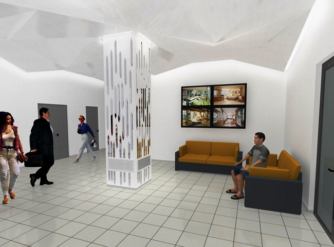 Vizualizace vstupní haly, návrh pro obložení sloupu.
